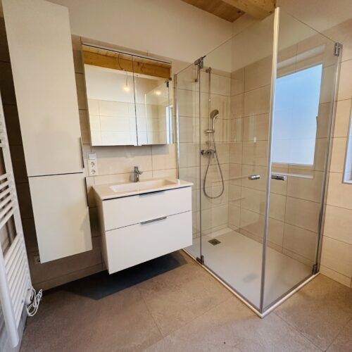 Gemeinsam mit der Firma Scandinavian Blockhaus haben wir bei unserem Kunden Herrn K. eine komplette Badsanierung umgesetzt und das Zuhause zusätzlich mit einer modernen Wärmepumpe sowie Fußbodenheizung ausgestattet.