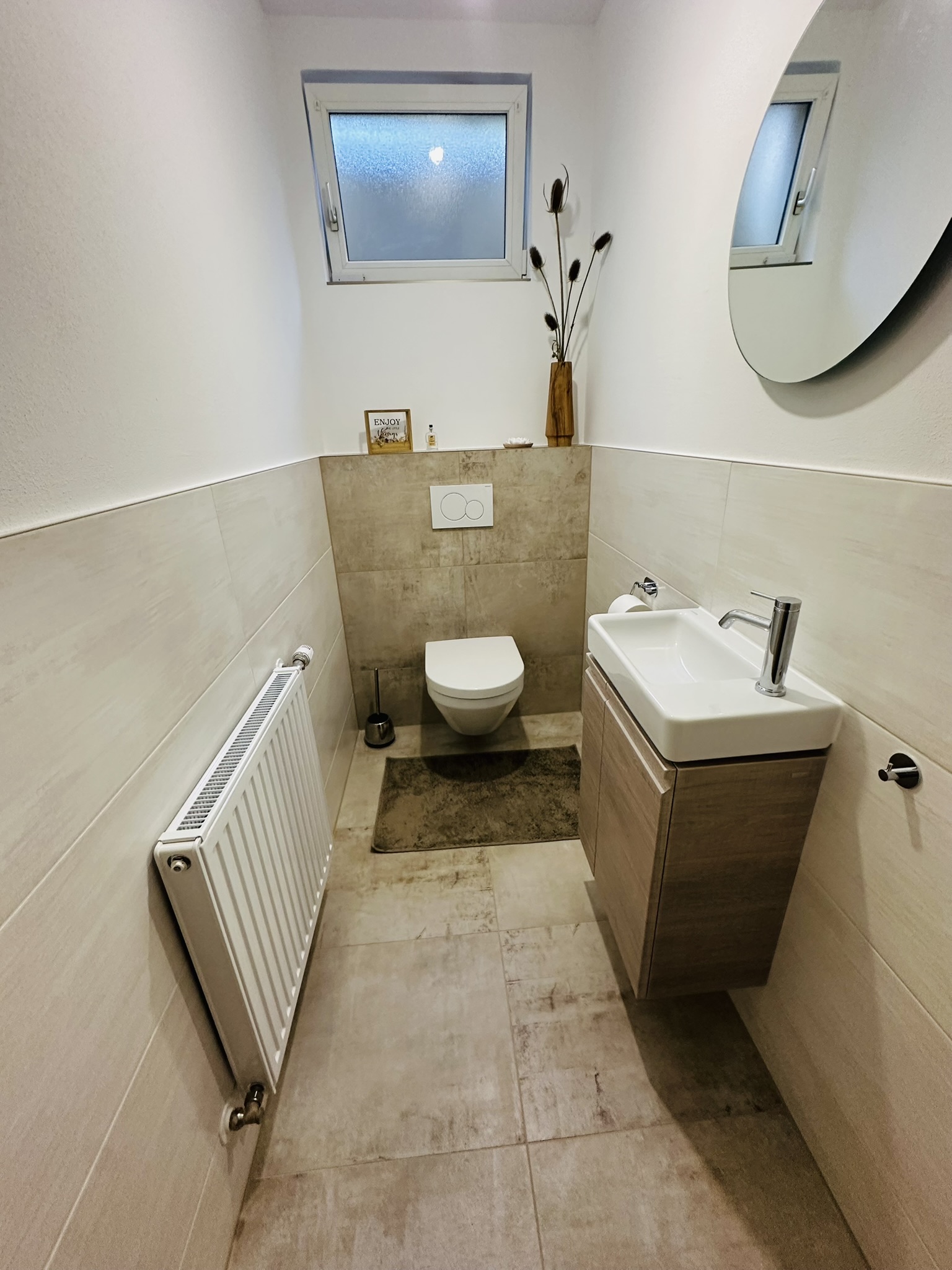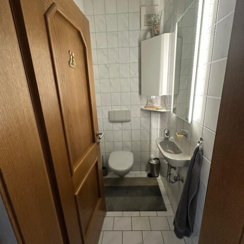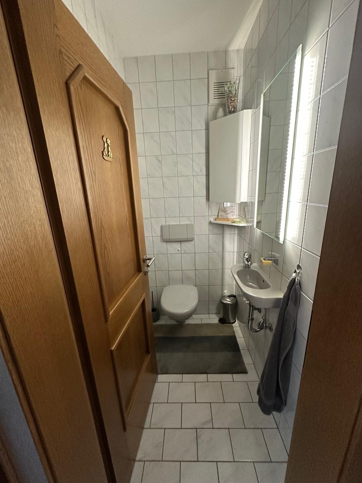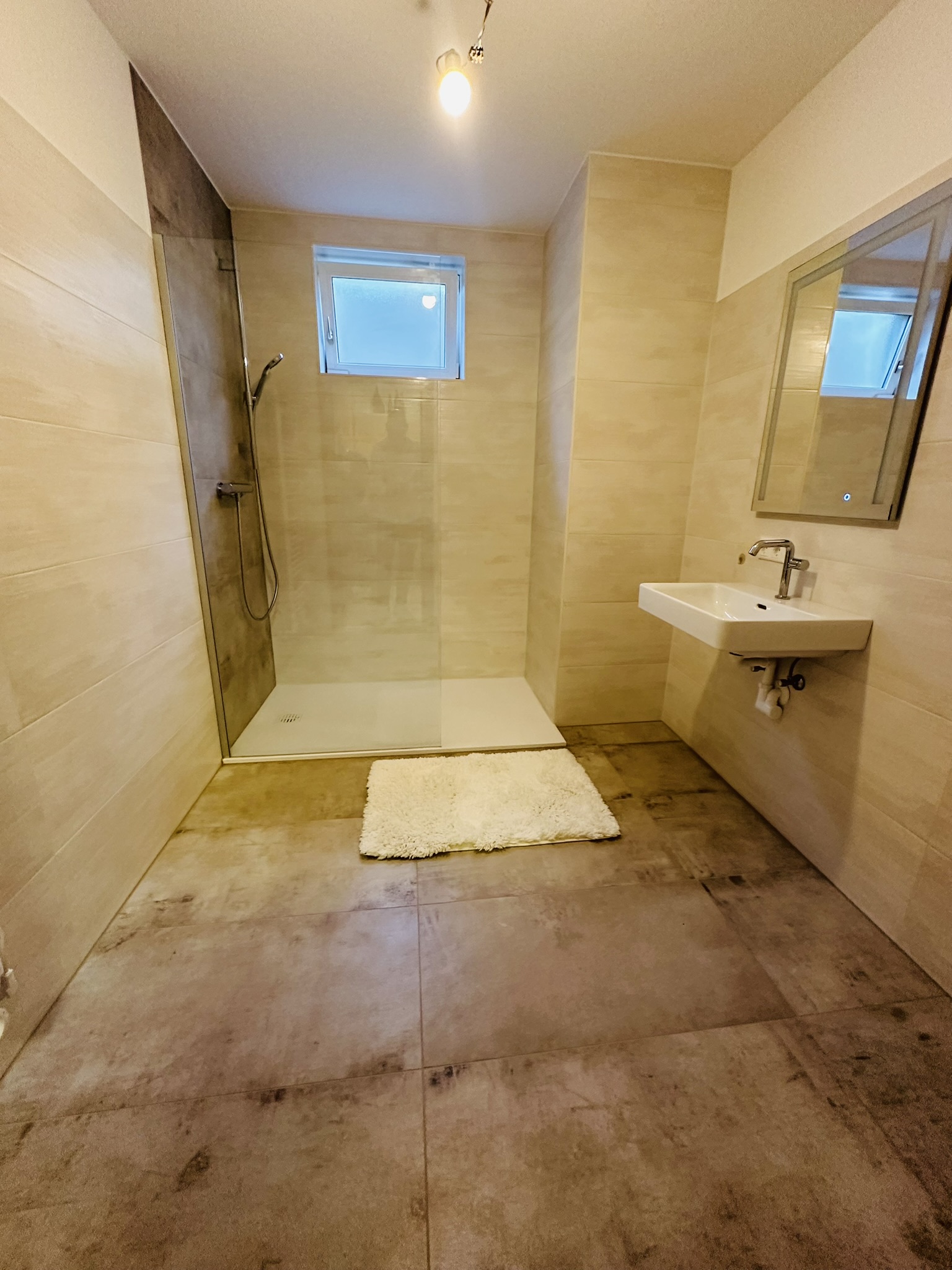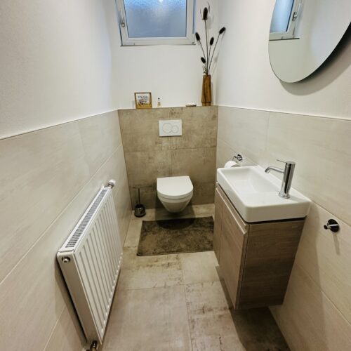Das bisher unbenutzte Badezimmer im Kellergeschoß wurde aus dem Dornröschenschlaf geweckt und in ein traumhaftes, farblich warm abgestimmtes, Wohlfühl-Badezimmer mit übergroßer barrierefreier Dusche verwandelt. Die angrenzende Toilette wurde in dem Zuge gleich mit revitalisiert.