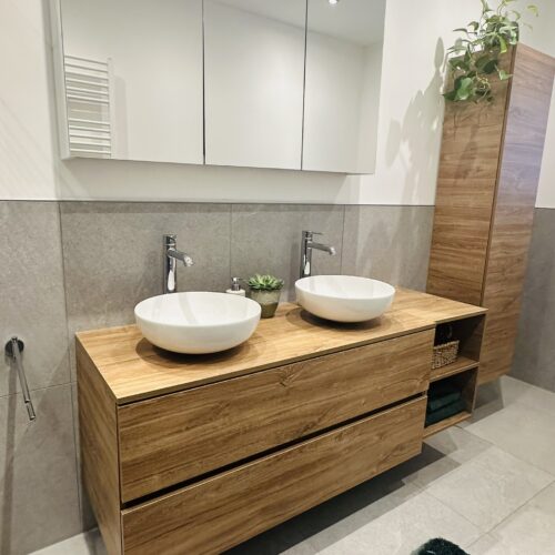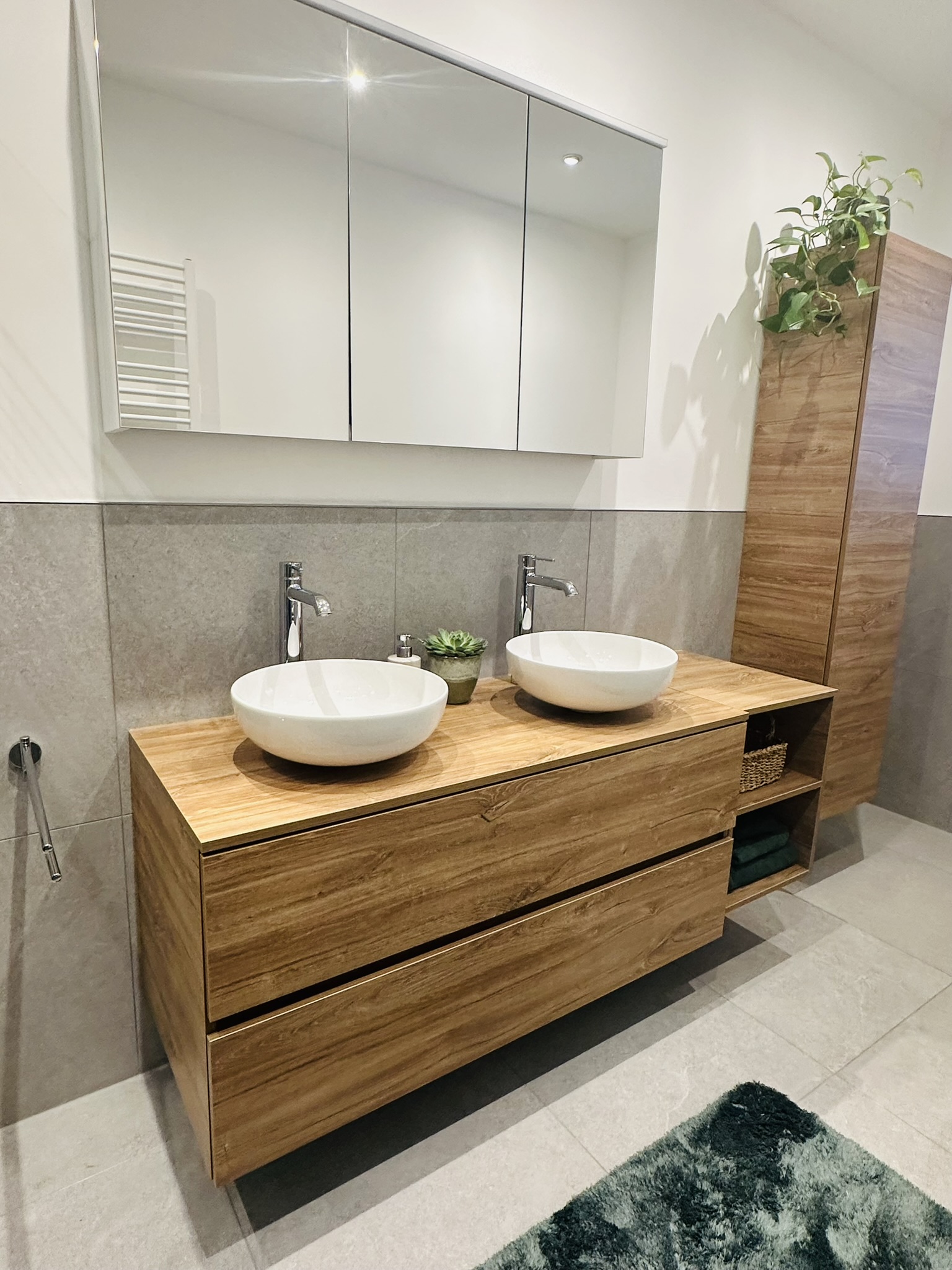 In diesem Projekt durften wir ein klassisches Badezimmer & WC vollständig neu gestalten und zu einem modernen Rückzugsort mit Wohlfühlcharakter entwickeln. Helle Farben, Holzakzente, hochwertige Materialien und ein durchdachtes Raumkonzept lassen den Raum nun größer, freundlicher und zeitlos elegant wirken.