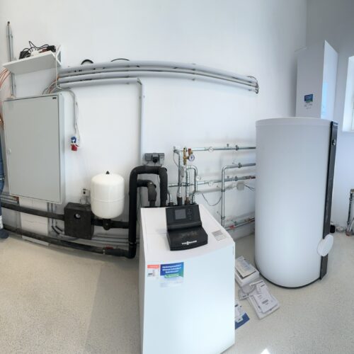 Eine VIESSMANN Erdwärmepumpe heizt oder kühlt das gesamte Objekt je nach Bedarf.